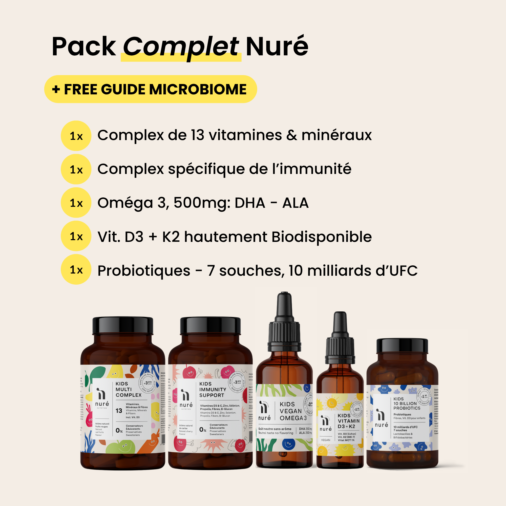 La majorité des compléments alimentaires pour enfants sont fabriqués à partir de vitamines synthétiques, de sucres raffinés, d'additifs et d'agents de charge, bref, on est loin du produit santé! Chez Nuré Nutrition, nous redéfinissons les standards du marché. Nos compléments sont soigneusement élaborés à partir d'actifs premium biodisponibles, enrichis en fruits, légumes, plantes et algues. Conçus sans compromis, nos formules sont à la fois pures, efficaces et réellement bénéfiques pour la santé des enfants. Et le meilleur dans tout cela? Ils les adorent!