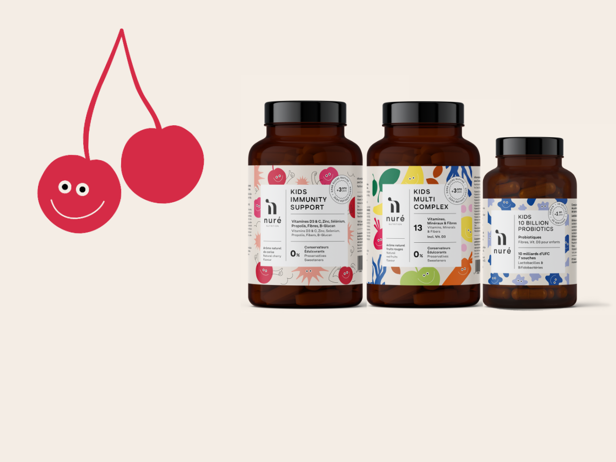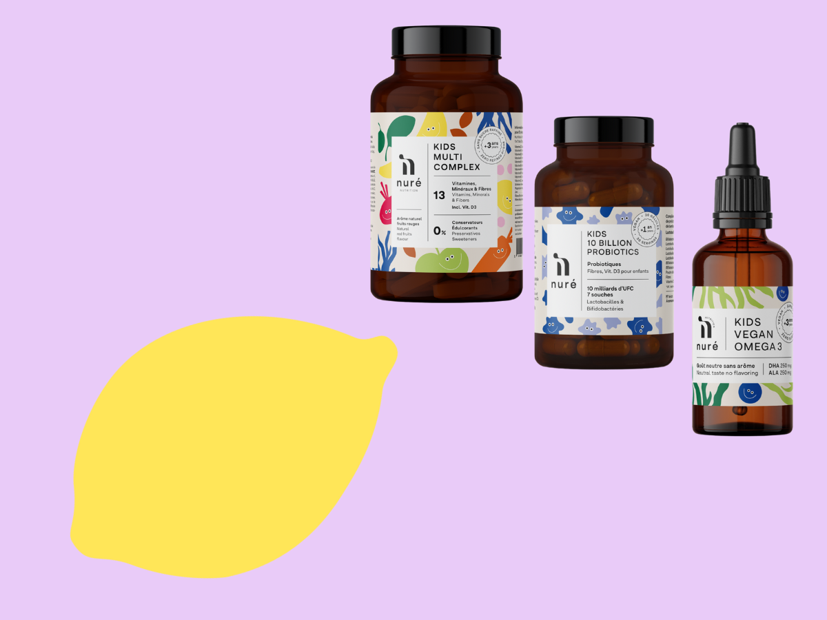La majorité des compléments alimentaires pour enfants sont fabriqués à partir de vitamines synthétiques, de sucres raffinés, d'additifs et d'agents de charge, bref, on est loin du produit santé! Chez Nuré Nutrition, nous redéfinissons les standards du marché. Nos compléments sont soigneusement élaborés à partir d'actifs premium biodisponibles, enrichis en fruits, légumes, plantes et algues. Conçus sans compromis, nos formules sont à la fois pures, efficaces et réellement bénéfiques pour la santé des enfants. Et le meilleur dans tout cela? Ils les adorent!